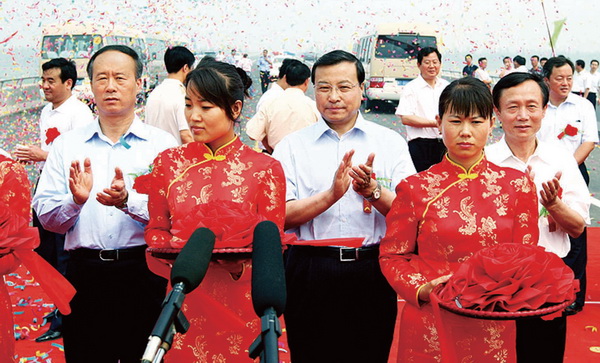 山東省副省長才利民(中)、河北省副省長宋恩華(左)等魯冀兩省領導出席運河特大橋通車剪彩儀式